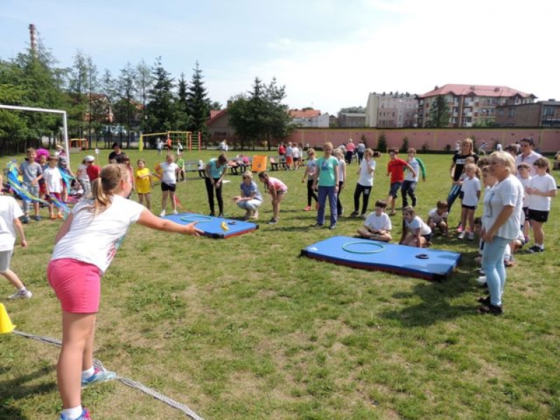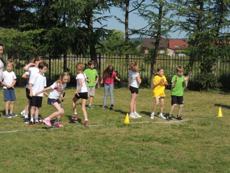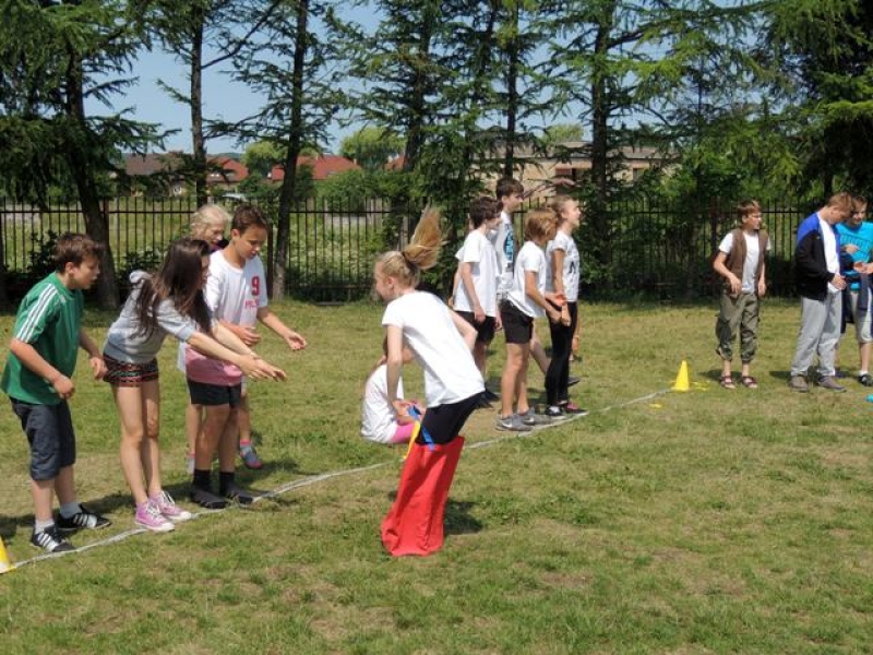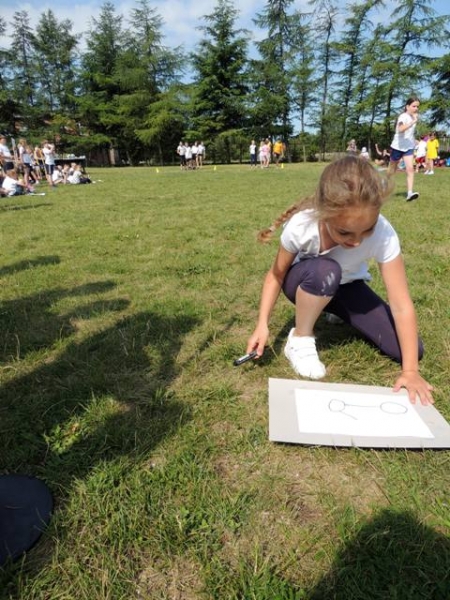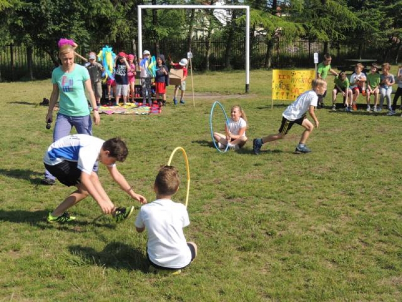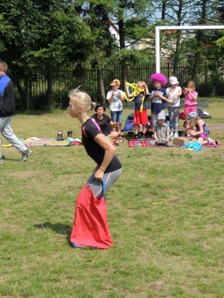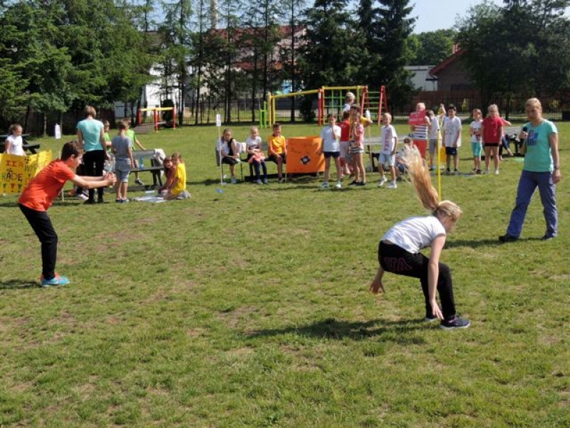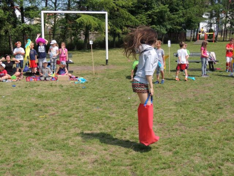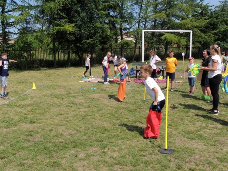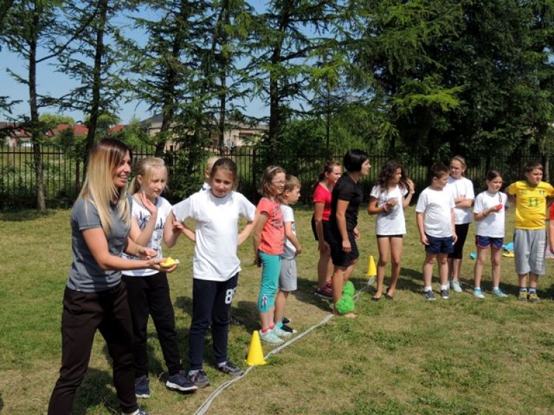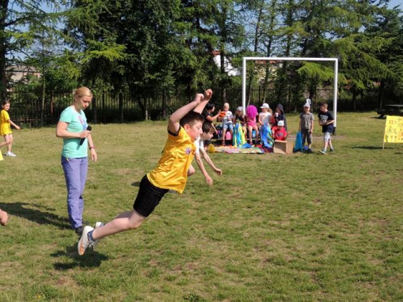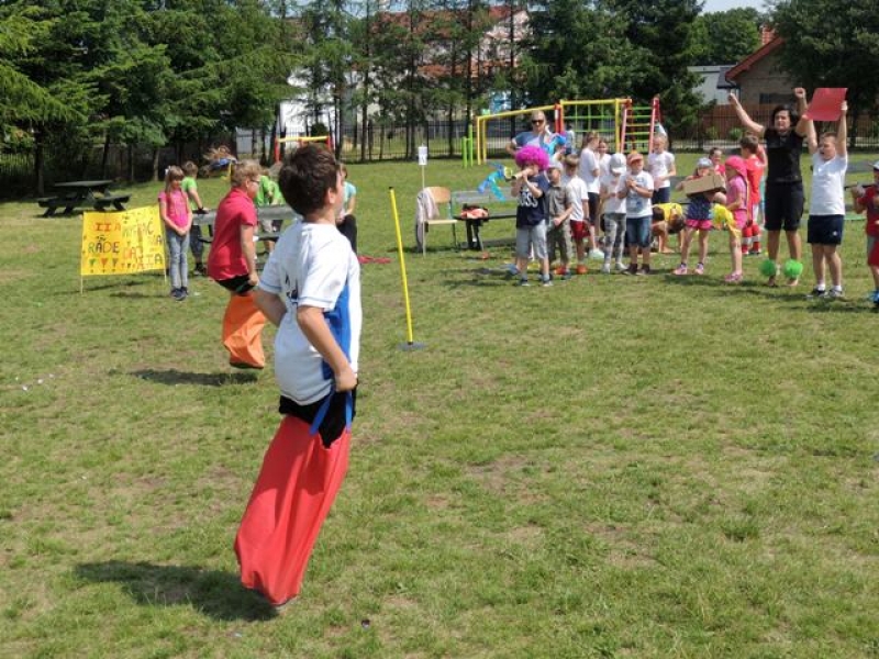 W poniedziałek, 20 czerwca, w naszej szkole obchodzono Dzień Sportu, podczas którego uczniowie mieli możliwość spróbowania swoich sił w wielu konkurencjach sportowych. Zawodnicy startowali w poszczególnych kategoriach wiekowych, osobno klasy I, II, III, IV, V i VI. Niektóre z konkurencji to między innymi: tor przeszkód, strzały na bramkę, wyścig z rysowaniem czy bieg z pałeczką sztafetową. Oprócz tego każda z klas miała za zadanie przygotować plakat dopingujący swoich zawodników. Wszystko odbywało się w atmosferze świetnej zabawy i zasad fair play oraz przy rewelacyjnym dopingu uczniów. Wiele emocji dostarczyła również konkurencja, w której brali udział nauczyciele, a był to rzut kredą na odległość. W końcowej klasyfikacji zwyciężyły klasy I a, II b, III a, IV b oraz VI, zajmując I miejsca, a tuż za nimi klasy I b, II a, III b, IV b, V, zdobywając miejsca II. Najlepiej kibicującą klasą była klasa I a z panią Martą na czele. Na zakończenie uczniowie otrzymali pamiątkowe dyplomy oraz puchary dla klas.