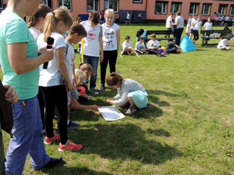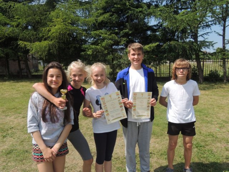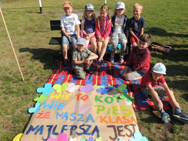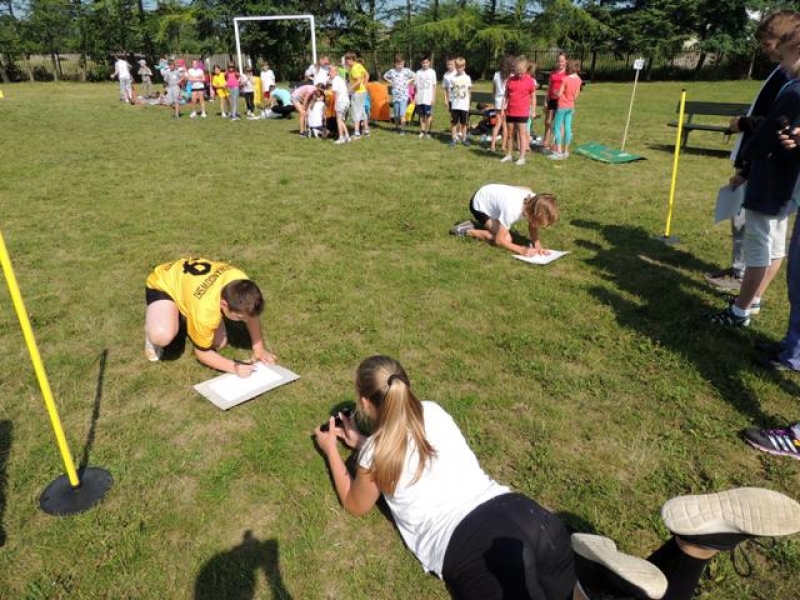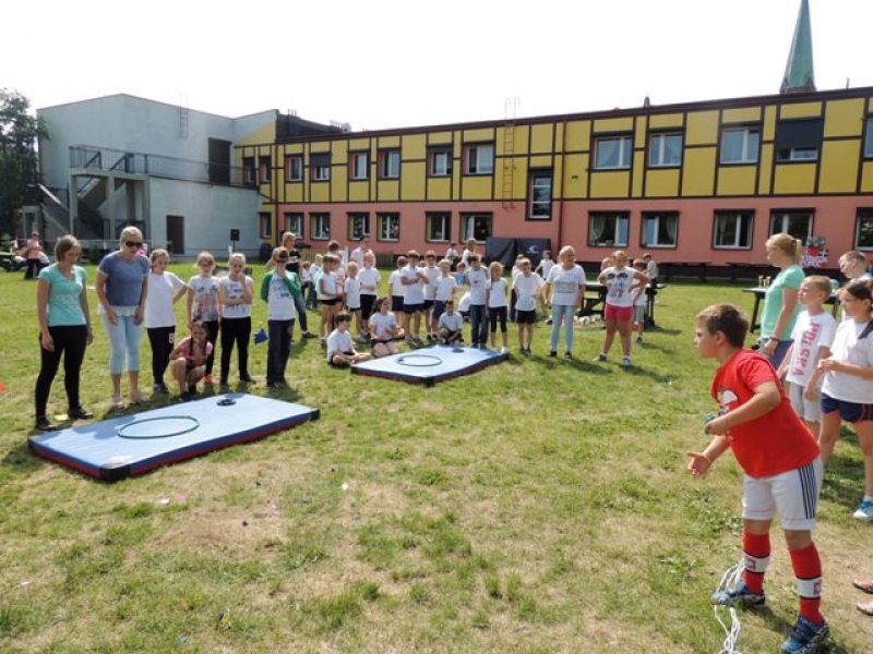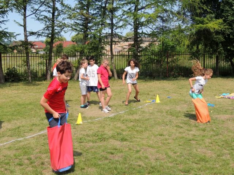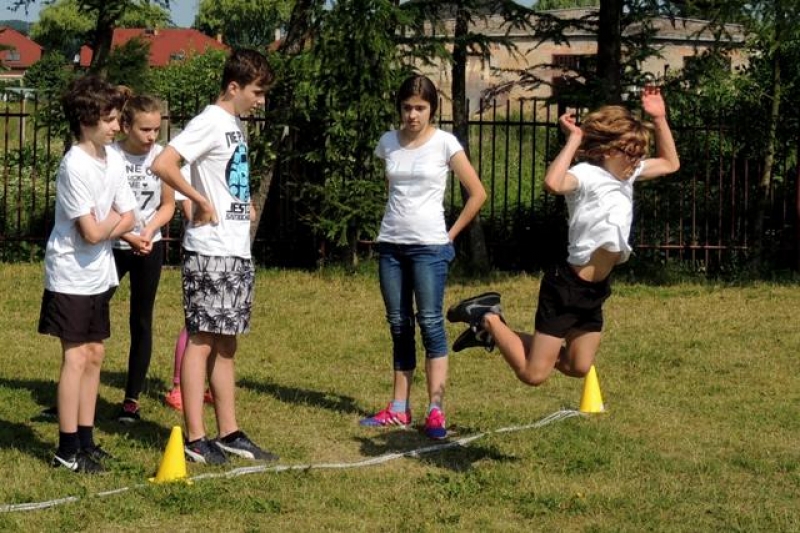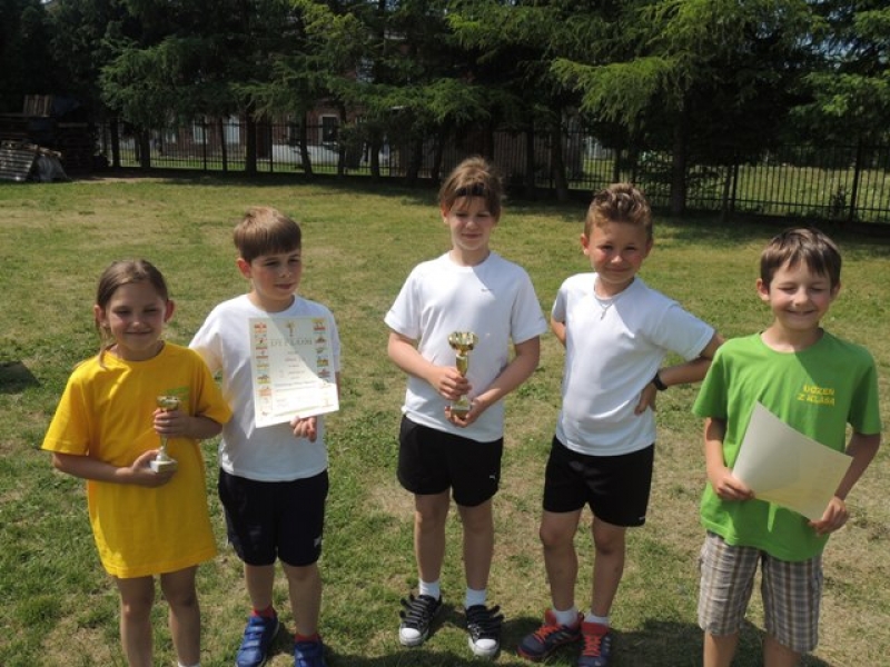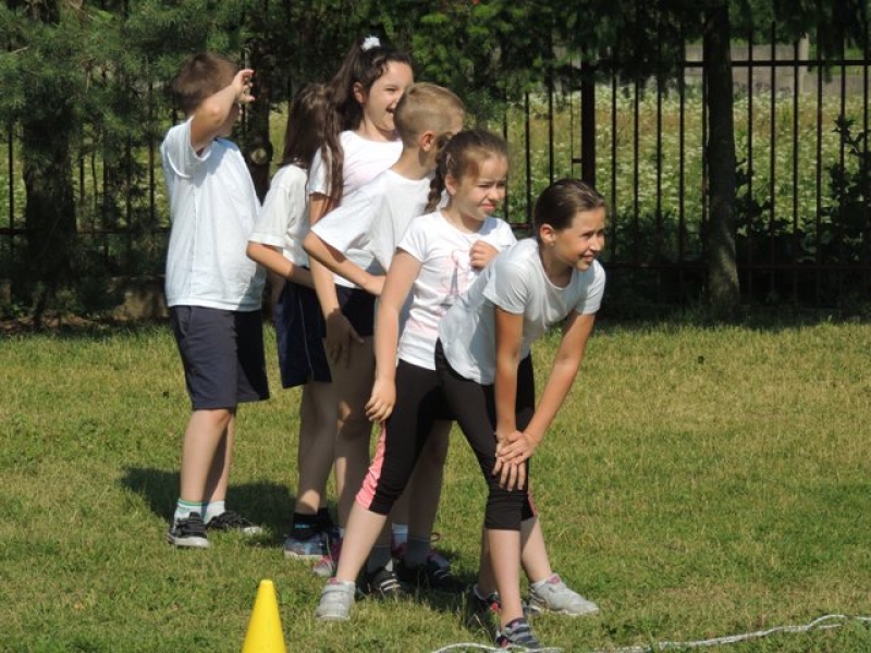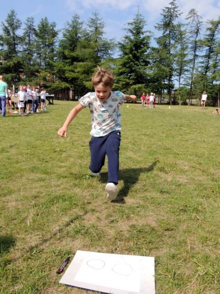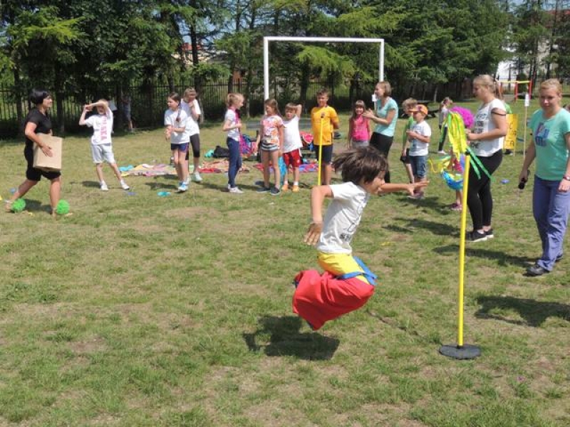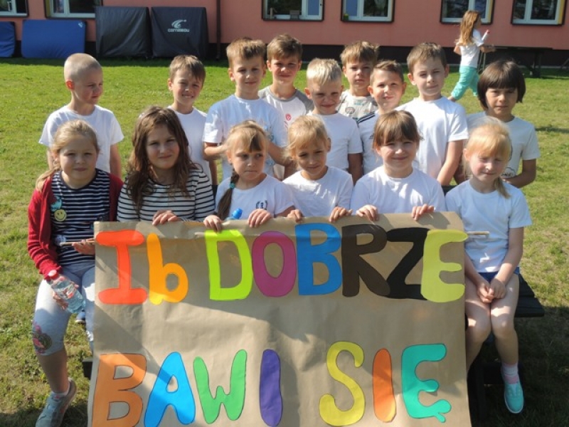 W poniedziałek, 20 czerwca, w naszej szkole obchodzono Dzień Sportu, podczas którego uczniowie mieli możliwość spróbowania swoich sił w wielu konkurencjach sportowych. Zawodnicy startowali w poszczególnych kategoriach wiekowych, osobno klasy I, II, III, IV, V i VI. Niektóre z konkurencji to między innymi: tor przeszkód, strzały na bramkę, wyścig z rysowaniem czy bieg z pałeczką sztafetową. Oprócz tego każda z klas miała za zadanie przygotować plakat dopingujący swoich zawodników. Wszystko odbywało się w atmosferze świetnej zabawy i zasad fair play oraz przy rewelacyjnym dopingu uczniów. Wiele emocji dostarczyła również konkurencja, w której brali udział nauczyciele, a był to rzut kredą na odległość. W końcowej klasyfikacji zwyciężyły klasy I a, II b, III a, IV b oraz VI, zajmując I miejsca, a tuż za nimi klasy I b, II a, III b, IV b, V, zdobywając miejsca II. Najlepiej kibicującą klasą była klasa I a z panią Martą na czele. Na zakończenie uczniowie otrzymali pamiątkowe dyplomy oraz puchary dla klas.
