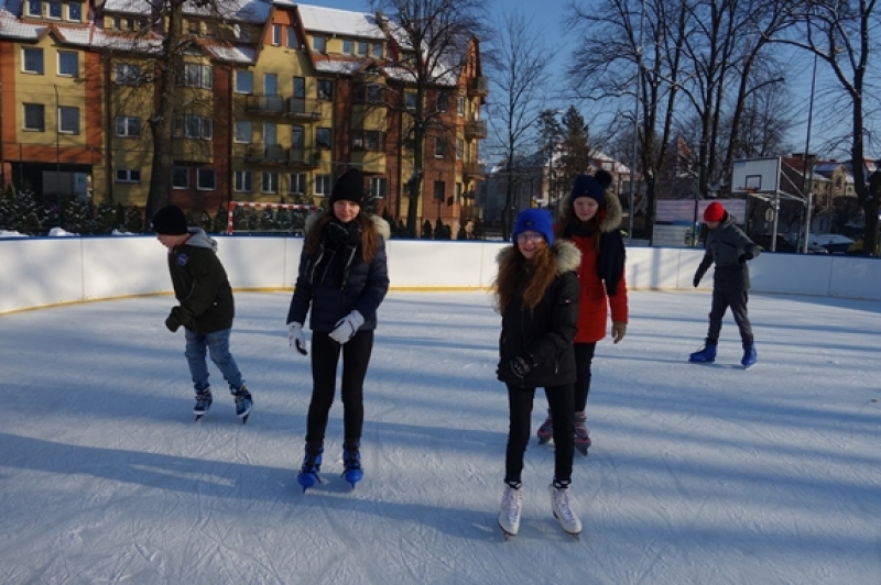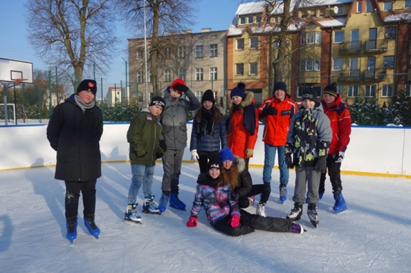 Uczniowie klas IV - VIII, podobnie jak w ubiegłych latach, w okresie zimowym mają możliwość nauki i doskonalenia swoich umiejętności łyżwiarskich. Jeśli tylko warunki atmosferyczne nam sprzyjają, lekcje wychowania fizycznego odbywają się na lodowisku. Jest to wspaniała okazja do aktywnego spędzania czasu na świeżym powietrzu.
