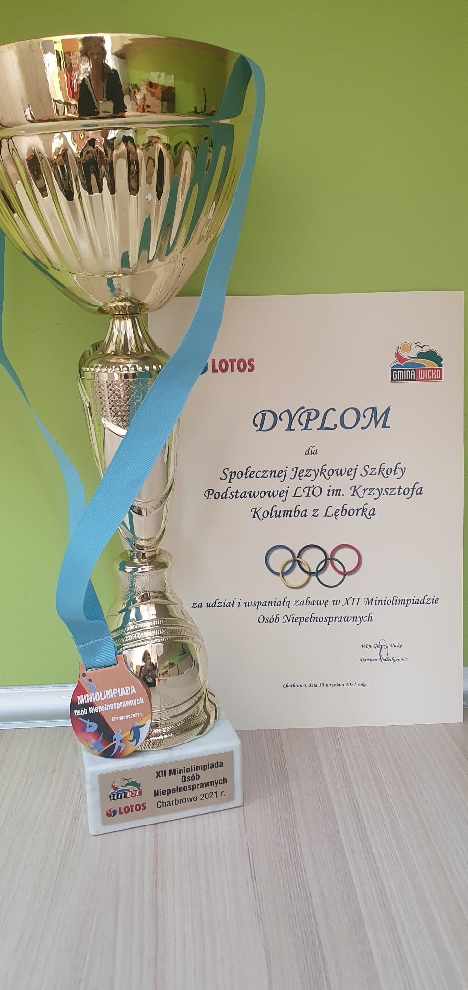 W piątek 10 września na stadionie w Charbrowie odbyła się XII Mini Olimpiada Osób Niepełnosprawnych, w której aktywnie brali udział uczniowie z naszej szkoły. Celem imprezy była popularyzacja rekreacji ruchowej i innych form aktywnego wypoczynku oraz integracja środowiska osób i instytucji działających na rzecz osób z niepełnosprawnościami. Uczestnicy mieli nie tylko okazję do sportowej rywalizacji, ale też do doskonałej zabawy.  Na wszystkich czekały liczne atrakcje: 20 konkurencji sportowych, przejażdżka ciuchcią, dmuchańce, wyrzutnia rakiet, pojazdy straży pożarnej, radiowozy policyjne, konie, lamy i alpaki, a także zabawa z animatorami. Nie zabrakło też słodkiego poczęstunku. Nasi uczniowie wrócili w doborowym humorze z pamiątkowymi medalami