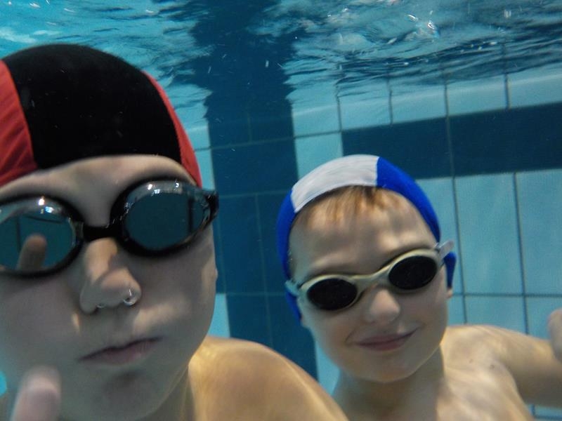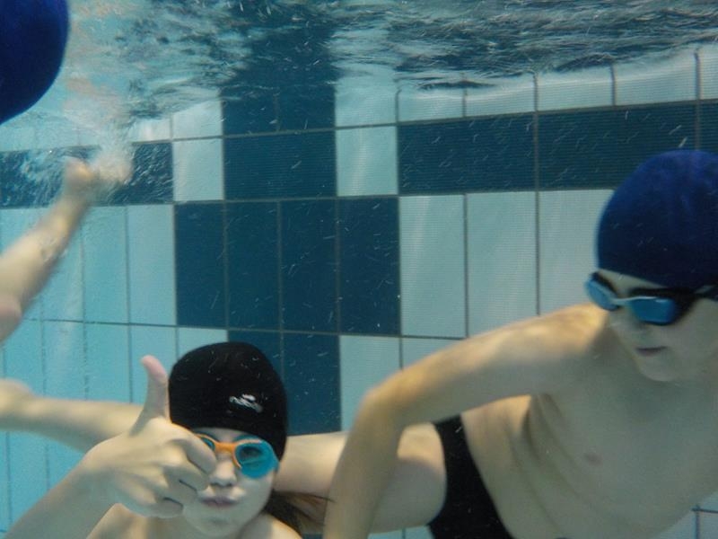 Uczniowie z klas IV-VI podczas lekcji wychowania fizycznego na basenie, pozowali do zdjęć pod wodą. Było to coś zupełnie nowego dla większości z nich i sprawiło im dużo radości. Pod wodą wygląda się trochę inaczej. Przede wszystkim trochę ciężej jest się uśmiechnąć, ale niektórym się udało!