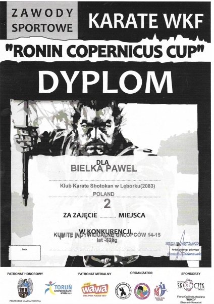 9 marca odbyły się Zawody Sportowe Karate WKF „ Ronin Copernicus Cup” w których Paweł Bielka zdobył 1 miejsce w konkurencji Kumite indywidualne chłopców 12-13 lat do 45kg oraz 2 miejsce w konkurencji Kumite indywidualne chłopców 14-15 lat do 52kg.